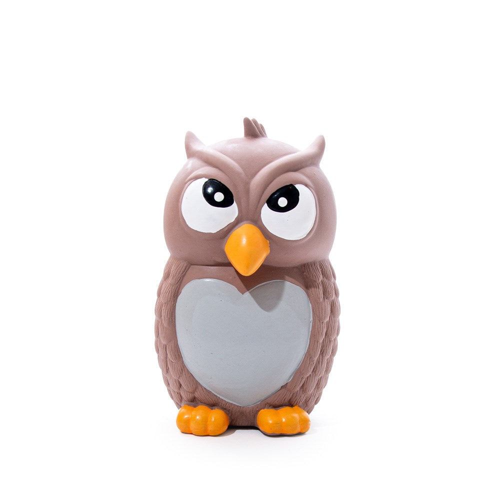 Interactive play, squeaky fun, fetch games, chew play, or anyone wanting a fun owl-shaped latex toy.