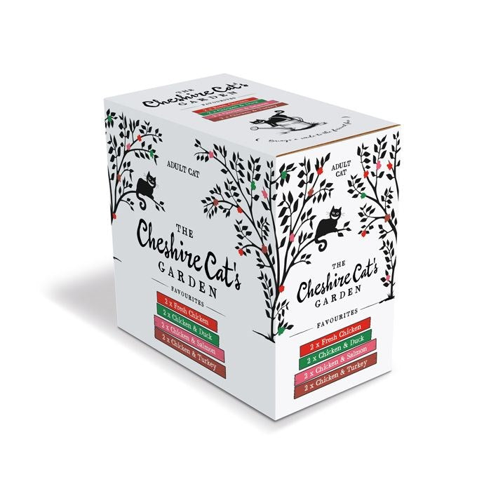 Nourish your cat with The Cheshire Cat's Garden Multipack! A palatable food available in a variety of flavours, all with a high meat content to suit the needs of every cat. This 8-pack offers great value and variety.
