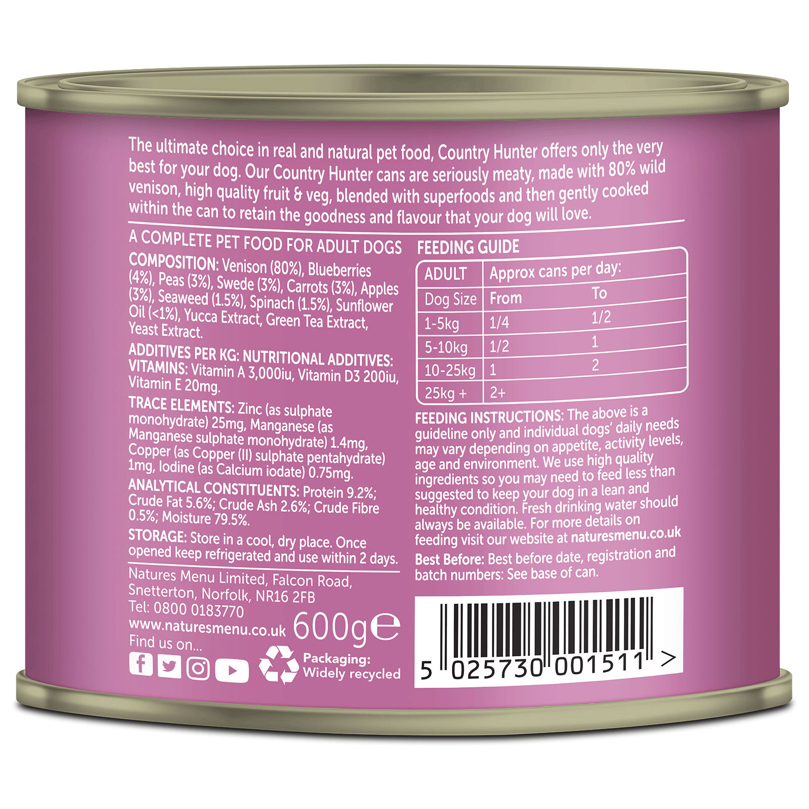 Natures Menu Country Hunter Dog Food with Superfoods 600g - Wild Venison with Superfoods