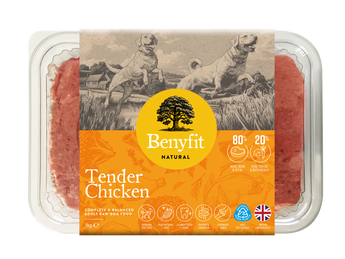 Nourish your dog with Benyfit Natural Complete RAW Tender Chicken - a premium, biologically appropriate raw diet made from British chicken. This complete meal provides everything your dog needs for optimal health, combining quality muscle meat, nutritious offal, and finely ground bone in the perfect 80:10:10 ratio. Enhanced with seasonal vegetables and natural supplements, this delicious recipe supports your dog's natural vitality from nose to tail.