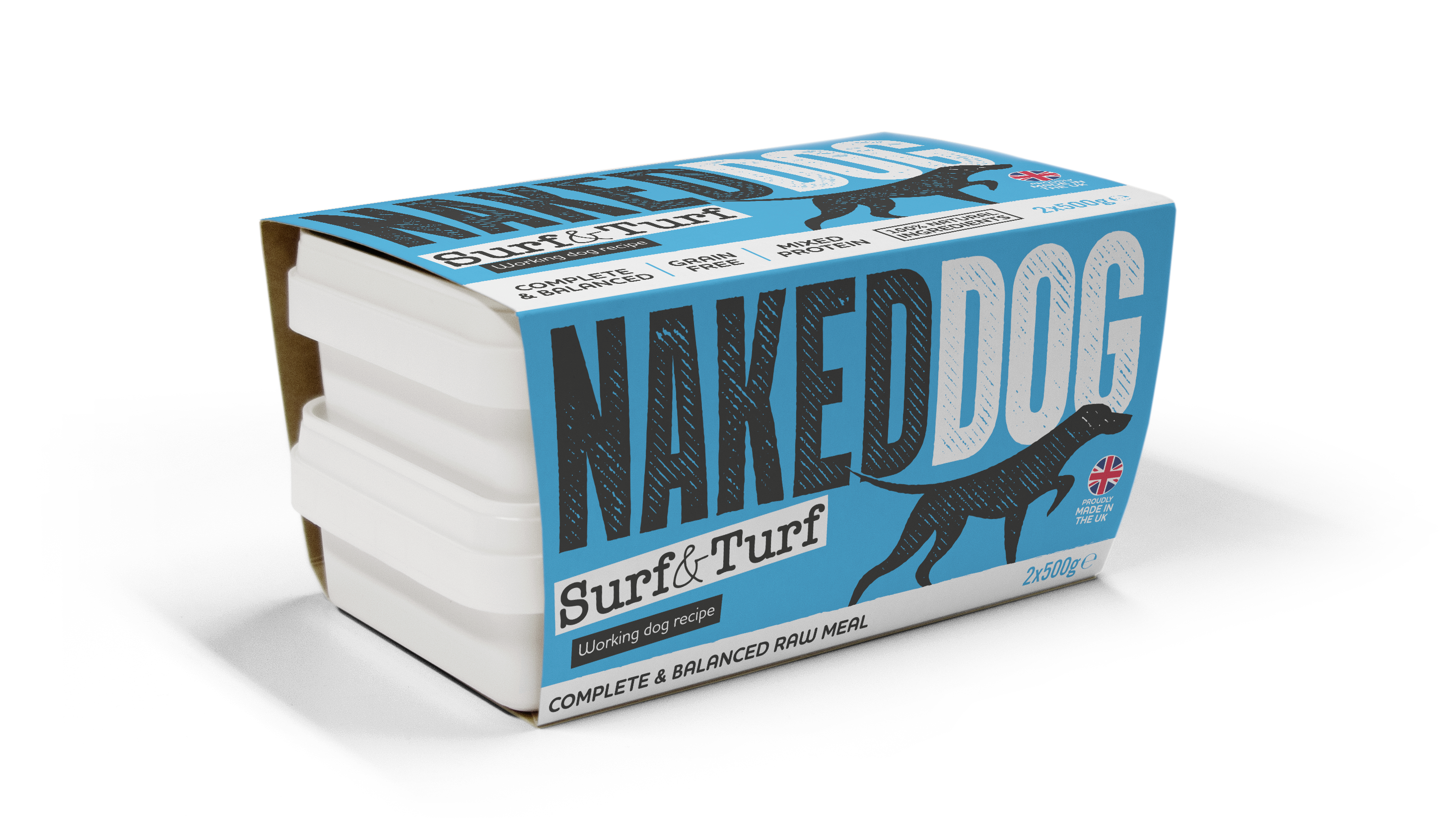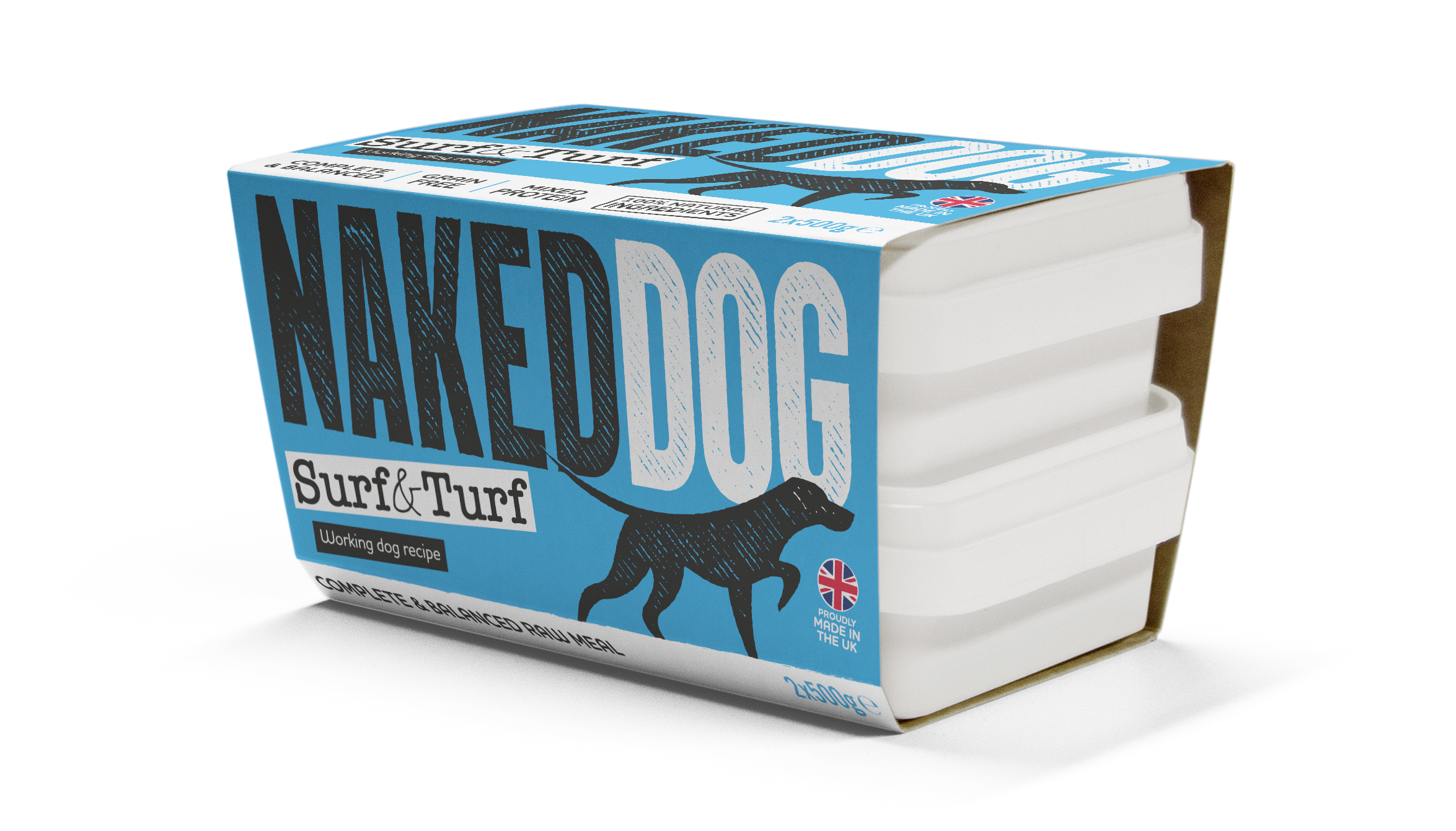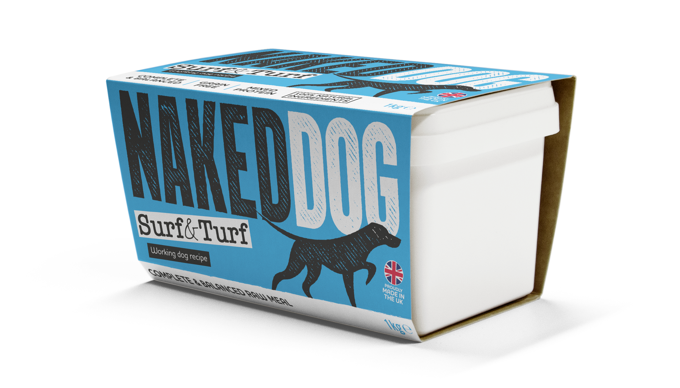 Feed your dog nature's best with NAKEDDOG Original Surf & Turf! This complete raw dog food features high-quality British white fish and beef with nothing artificial added. A lean, nutritious high-protein meal. Available in convenient sizes to suit your needs.