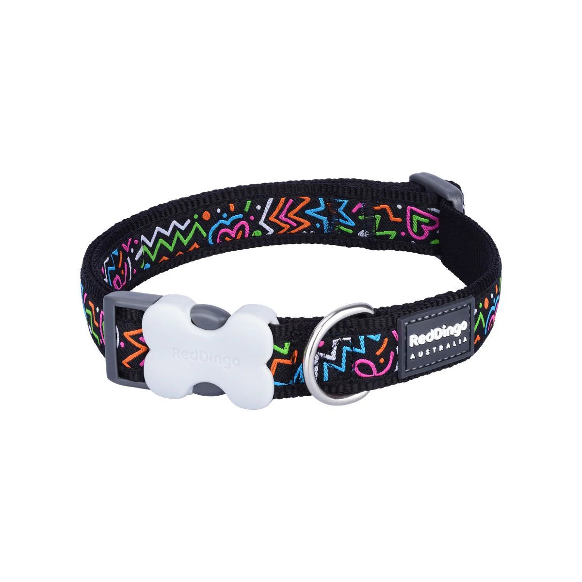 Style your dog with the Red Dingo Squiggles design collar! This premium adjustable collar combines Red Dingo's signature durability with playful squiggle artwork in black, featuring comfortable padding and secure buckle closure for everyday wear and special occasions.