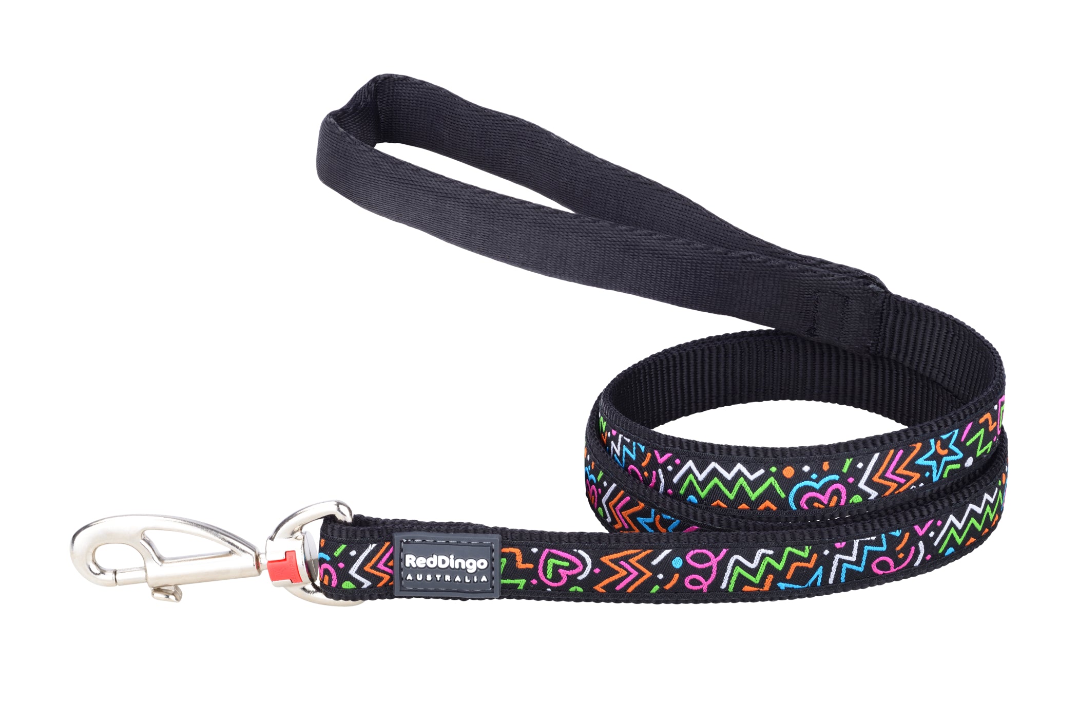 Walk in style with the Red Dingo Squiggles design lead! This premium 1.2m lead combines Red Dingo's signature durability with a playful squiggle pattern in black, featuring a comfortable padded handle for extended walking comfort.
