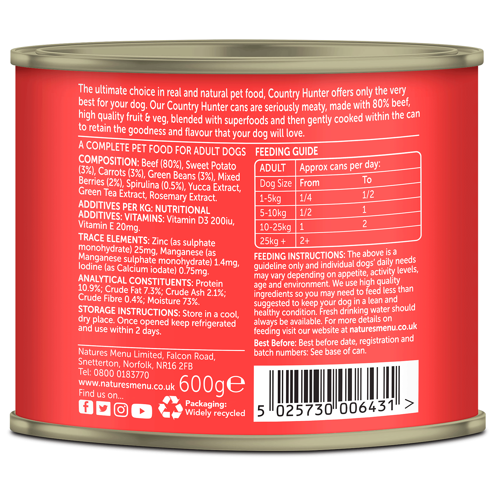 Natures Menu Country Hunter Dog Food with Superfoods 600g - Beef with Superfoods