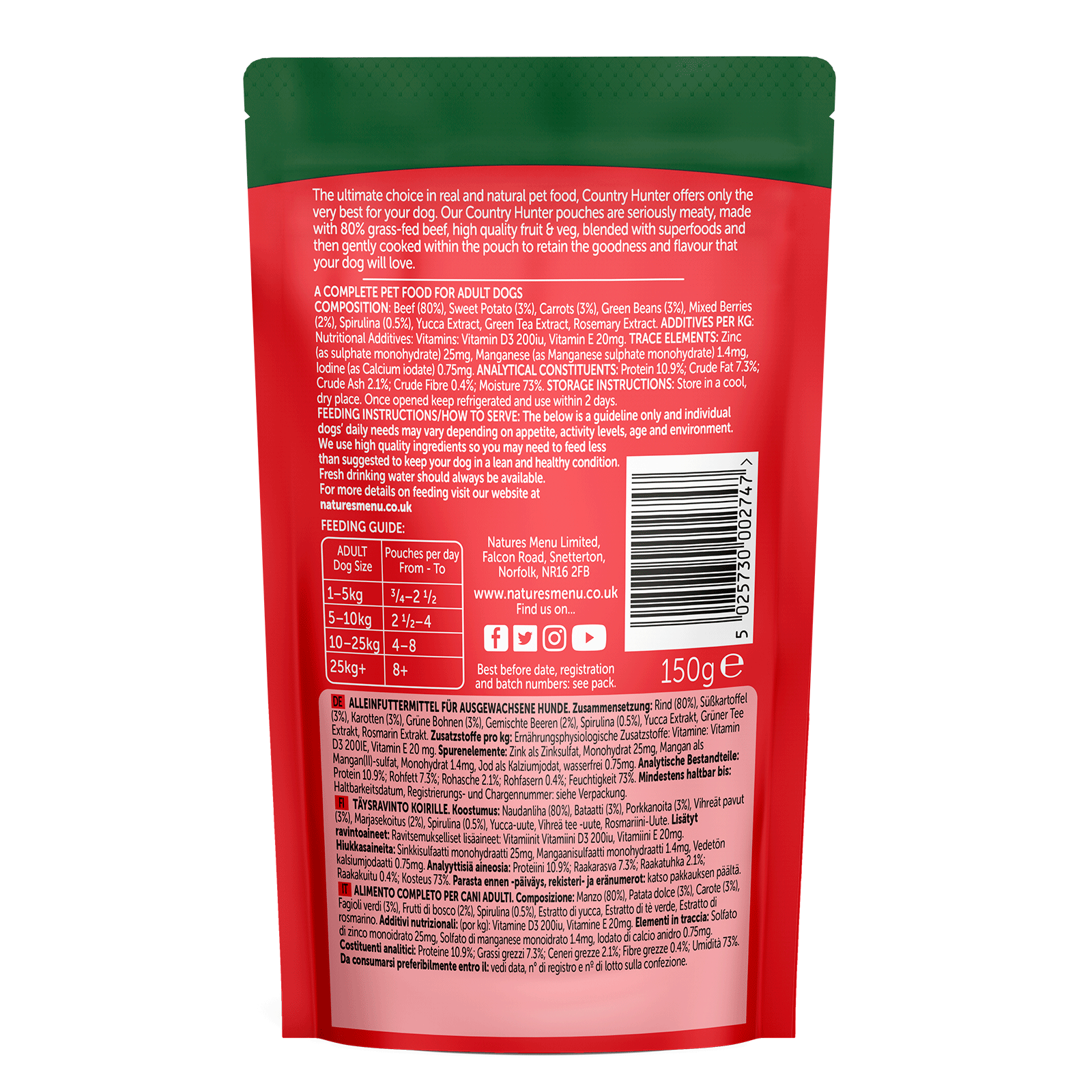 Natures Menu Country Hunter Pouch 150g - Beef