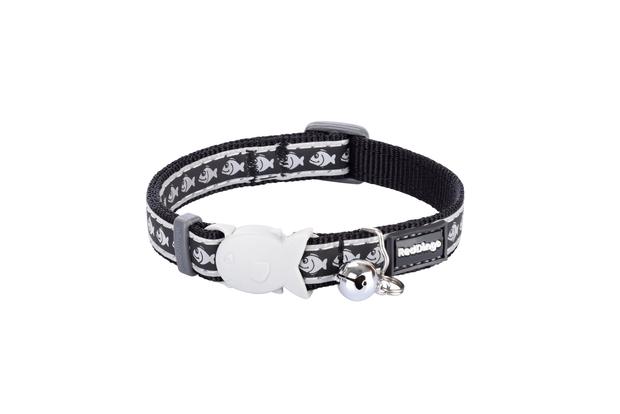 Keep your cat safe day and night with the Red Dingo Reflective Fish Black collar! This premium adjustable collar combines Red Dingo's signature durability with advanced reflective technology and fish pattern design, featuring comfortable padding and secure breakaway safety buckle for maximum visibility and safety.