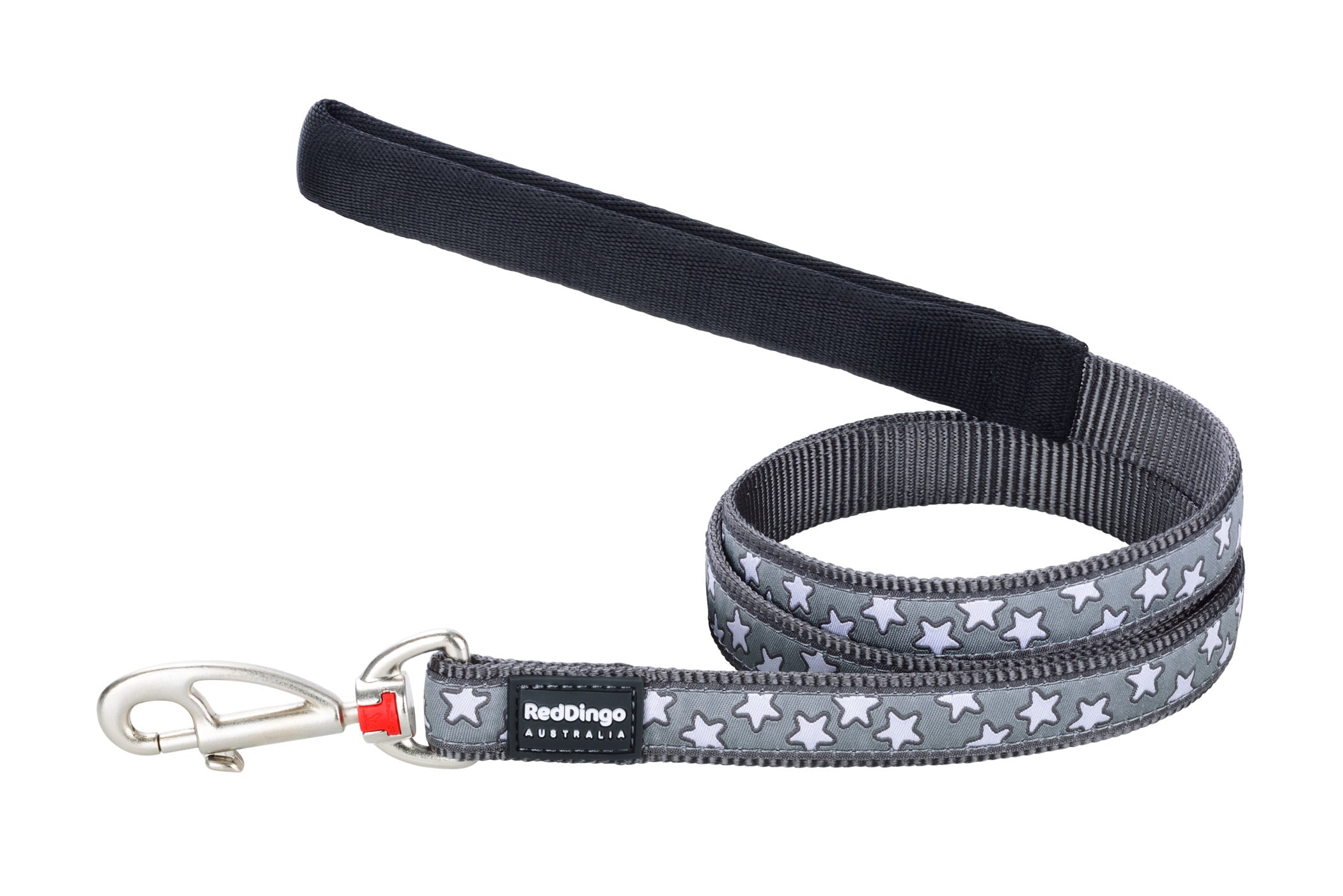 Red Dingo Dog Lead Design Stars White on Cool Grey 1.2m